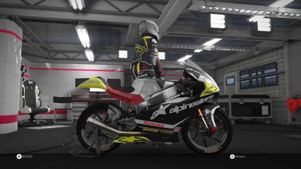 Là, Milestone a fait du bon quand même. Non seulement les sensations sont là, mais en plus, la motivation de progresser vient rapidement. Pour débloquer les pilotes, comme dit précédemment, mais aussi pour le plaisir de se voir progresser. Même moi qui ne suis pas très douée pour ce genre de jeu (même si je les apprécie), j’ai pris beaucoup de plaisir à jouer sans aide à la conduite. Parce que vous pouvez choisir d’activer l’aide au freinage, à la direction ou encore faire apparaître les lignes de guide au sol. Et sans ça, il m’a fallu faire plusieurs fois la même piste pour réussir… Personne n’est parfait (ou doué en l’occurrence). Chaque type de virage est à prendre différemment. La sensation de vitesse est vraiment présente. Le son aide aussi. Bon j’avoue que ça m’a beaucoup amusé quand mon pilote chutait, mais quand on sait que je ne regarde les courses que pour les chutes… Il faut dire que j’ai eu pas mal de collision avec des pilotes gérés par l’IA. J’avais la furieuse impression qu’ils se jetaient sur mes roues. Alors non, ça ne veut pas dire que l’IA est particulièrement agressive et qu’elle est prête à suicider ses pilotes pour m’empêcher de gagner. Mais ça veut juste dire que ses pilotes suivent une trajectoire écrite et qu’elle ne prend pas en compte l’intervention de mon pilote sur leur trajectoire. Elle fait donc comme si mon pilote n’était pas là, ce qui me fait beaucoup râler. Mais je dirais que mon pilote a fait de belles progressions sur la qualité de ses chutes… Dommage que les chutes ne soient pas évaluées.