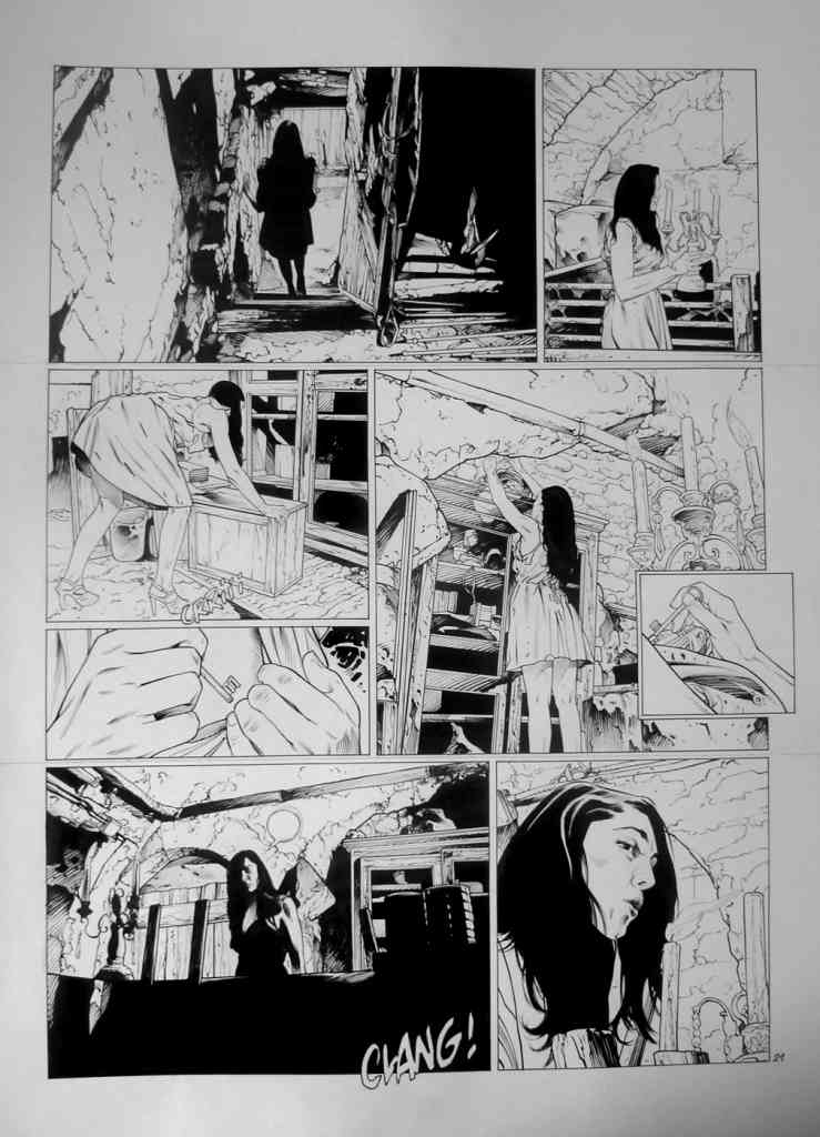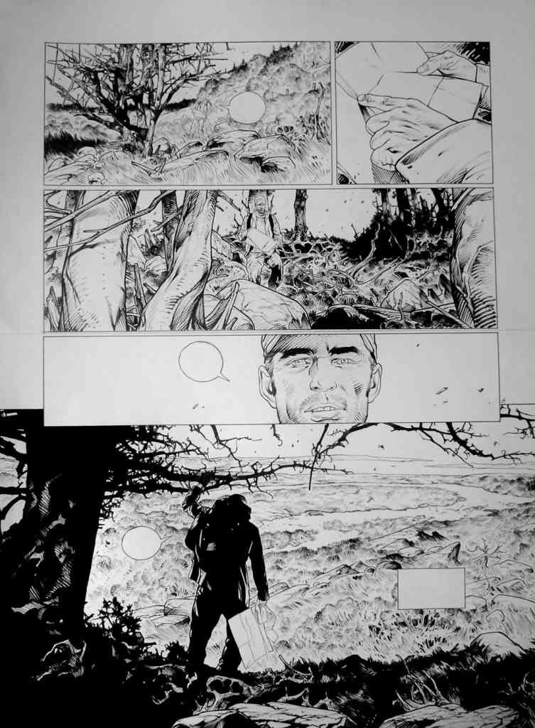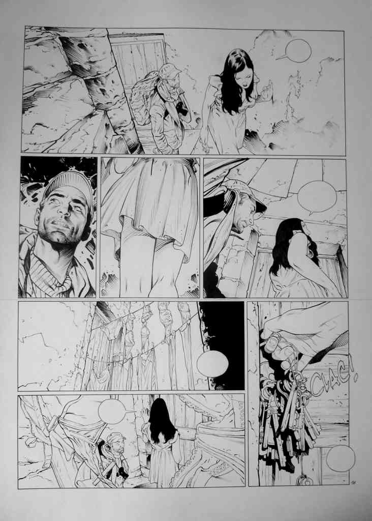 L’encrage, phase ô combien essentielle pour Christophe Bec sur ce projet qui devait conserver un trait lisible et un hyper-réalisme. Le travail avant la mise en couleur sur des grands formats, qui pourrait donner lieu en 2016 à une édition elle aussi grand format chez Les Sculpteurs de bulles, mérite le détour. Les heureux et privilégiés acquéreurs d’un exemplaire noir et blanc ne me contrediront pas lorsqu’ils auront leur exemplaire entre les mains (en espérant que ce projet aboutisse) !