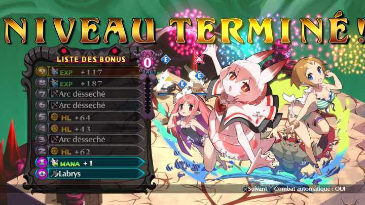 Pour ce dernier opus en date, plusieurs nouvelles features et options de confort ont été intégrées à commencer par l’ajout de classes de démons inédites considérées comme des unités géantes. Ces dernières prenant cinq fois plus de place (cinq cases donc), elles sont pratiques pour empêcher les adversaires d’avancer et leur zone d’attaque plus large que la normale permet de planifier davantage de stratégie.[…]Parlant de contre-attaque et de frappes, Disgaea 6 – Defiance of Destiny n’y va pas de main morte avec ses dégâts colossaux atteignant le quadrillion à force de persévérance et de renforcement lié aussi à l’Ultra-Réincarnation. D’ailleurs si les énormes dégâts peuvent déjà faire perdre la tête avec la multitude de chiffres, le seuil de Level aussi, le niveau maximal étant aujourd’hui fixé à 99 999 999.[…] Mais attention rassurez-vous, la montée en Level est bien plus rapide que par le passé, et les développeurs ont également implémenté une feature à double tranchant pour ce genre d’expérience : le combat automatique et l’accélération de la vitesse par quatre dans un premier temps. En combinant les deux fonctionnalités ensemble, notre troupe effectue directement des attaques et des capacités spéciales afin de venir rapidement à bout des opposants. Et il est même possible d’effectuer les combats en boucle d’une simple pression de touche.[…] D’ailleurs à ce sujet, le mode automatique dispose même d’une seconde feature associée en la présence de l’Intelligence Maléficielle liée à des Démonicodes. Pour celles et ceux connaissant notamment le système des Gambits de Final Fantasy XII, c’est assez similaire puisqu’il suffit d’associer le comportement de ses alliés et des attaques/capacités en fonction de trois critères. Il est donc tout à fait possible de choisir quel type d’adversaire à vaincre en priorité et le type d’attaque. Si encore une fois les novices en la matière auront une aide de taille, certaines joueur(euse)s se sentiront peut-être trop spectateur(trice)s face à ce genre d’initiatives pourtant bienvenues.