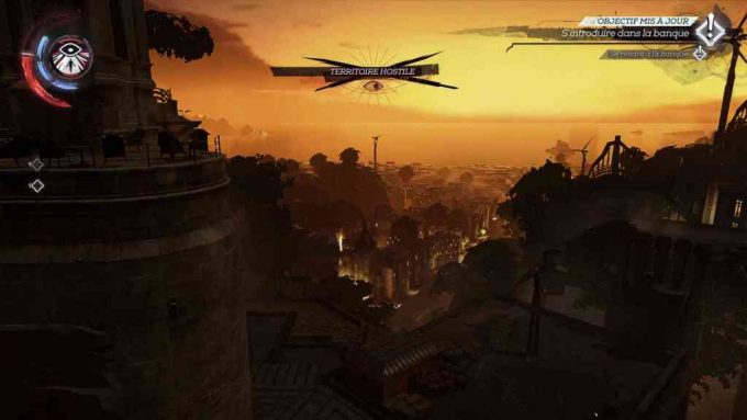 Et je garde le meilleur pour la fin : Prescience. Ce pouvoir fantastique arrête le temps et permet de quitter son corps pour explorer les environs (sans trop s’éloigner tout de même). Très pratique pour préparer son passage sur les toits, découvrir combien de gardes se cachent derrière un contrôle. Mais il permet aussi de voir les charmes d’os plus facilement et de marquer des objets et personnages comme les gardes, ce qui vous permet de suivre et anticiper leurs déplacements. Il permet aussi de traverser une grille. En gros, si vous voulez traverser une grille, il faut utiliser Prescience pour trouver un passage afin de se retrouver de l’autre côté de la grille. Là, vous déposez d’un point d’encrage. Et une fois revenu dans votre petit corps, Transfert doit vous permettre de rejoindre ce point d’encrage. Sauf que ça n’a pas fonctionné pour moi. Je ne comprends pas pourquoi. Du coup, je préfère exploser les soldats solitaires avec Transfert. Na !