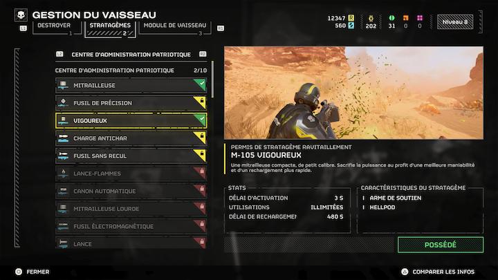 Maintenant, parlons des récompenses. Les missions ont des objectifs principaux et secondaires ainsi que nombre de choses à collectionner ce qui pourrait provoquer une concurrence au sein de l’équipe, mais il n’en est rien car à la fin de la mission tout le monde gagne la même chose, c’est à dire l’intégralité des jetons, de l’XP, … de l’équipe. Pas mal ça. Vous pourrez ainsi dépenser votre argent dans de nouvelles armes et armures. A noter d’ailleurs qu’il y a un système de Battle Pass payant. Vous pourrez aussi améliorer votre vaisseau débloquant par là-même de nouvelles armes tactiques.