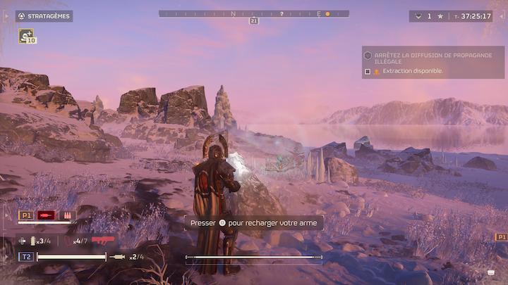 Mais attention, vous ne pourrez pas faire n’importe quoi car une des marques de fabrique de Helldiver, c’est le tir ami. Oui, si vous tirez sur un camarade, il sera blessé ou mort. Et c’est bien cela qui donne du sel à l’aventure car l’action est souvent foutraque du fait du grand nombre d’ennemis donc cela vous pousse à être très vigilant quand vous avez des camarades dans votre ligne de mire.