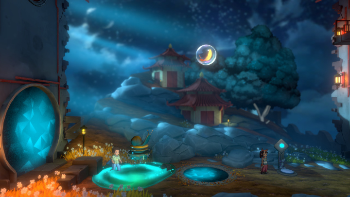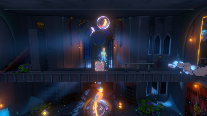 Des lieux qui au lieu d’être explorés comme dans la plupart des autres jeux, peuvent ici être « déplacés » à l’envie pour résoudre diverses énigmes. Car oui, Lost Twins 2 est un titre de réflexion demandant de se creuser progressivement les méninges avec des séquences de plateformes, de puzzles et d’énigmes sous couvert d’environnements ou plutôt de tableaux visitables en 2D.