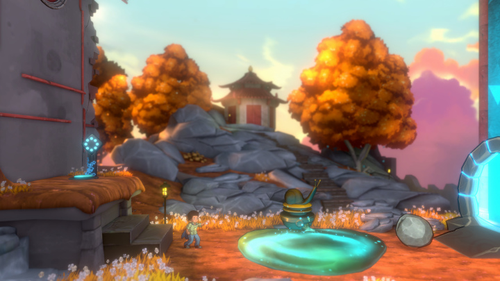Passons maintenant à la dernière partie de cette critique, plus précisément l’apparat visuel et sonore. Cela ne vous aura sans doute pas échappé, le titre est tout ce qu’il y a de plus charmant. C’est propre, coloré avec des tons pastels, des arrière-plans bien réalisés mais aussi ce qu’il faut de détails pour ne pas casser l’ambiance de contes inspirée par le studio Ghibli. En bref, ce jeu développé sous Unity charme aussi par sa direction artistique. On dénote juste quelques petits désagréments techniques sur Xbox Series X (notre console de test) avec de petits temps de chargement entre chaque tableau/Stage, ce qui n’est pas vraiment contraignant en soi mais plutôt à signaler comme nous l’avons fait pour la « physique » de divers objets en amont de cette critique.