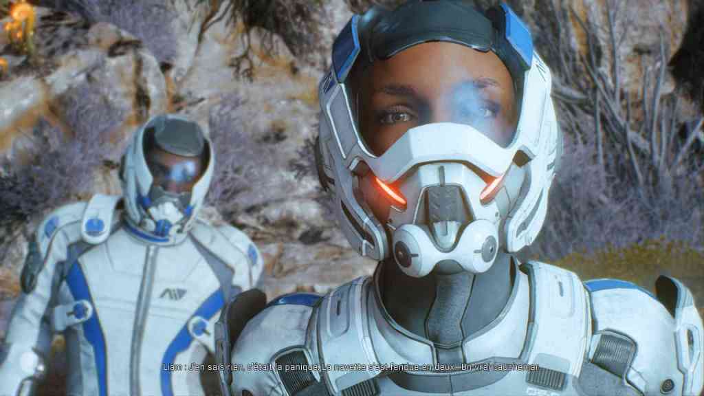 Les développeurs ont réussi à intégrer une petite dose d’humour, subtile mais bien présente. Comme quand Drack, un des aliens de votre équipage, essaye de vous réconforter après la mort de votre père et vous envoie des photos d’armes pour vous remonter le moral. Avec des photos en doubles et de mauvaise qualité parce que ce n’est pas son truc la technologie qui ne sert pas à faire mal… Ou quand vos deux partenaires se lancent des pics pendant que vous explorez une planète. Humour subtile mais très utile pour se sentir plus proche des personnages. Moi j’avoue, j’ai une faiblesse pour Drack !