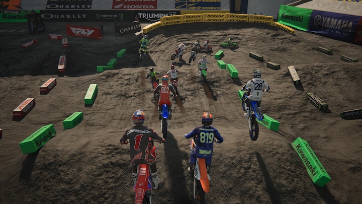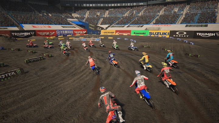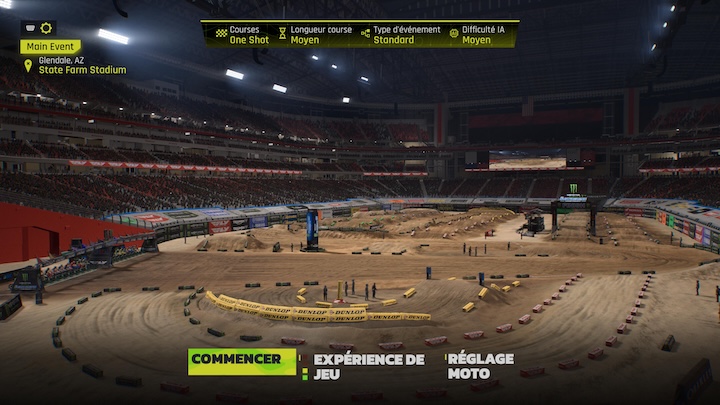 Au rayon des nouveautés, il y a l’arrivée de l’Unreal Engine 5 qui fait bien le job. Les motos sont belles, les pilotes sont bien modélisés et les animations sont fluides, pas de ralentissements intempestifs ! Les stades sont de bonne facture même si on peut encore faire mieux, notamment sur les abords … La piste, elle, est très réussie et on apprécie une vraie belle nouveauté : le fait que la surface de course soit modifiée au fur et à mesure du passage des motos. Attention donc aux bourrelets et autres tranchées qui apparaissent dynamiquement. Je ne suis pas spécialement expert pour juger de l’aspect simulation du soft, à savoir la correspondance des motos et de leur comportement dans la réalité, mais on constate bien des attitudes différentes en fonction des modèles.