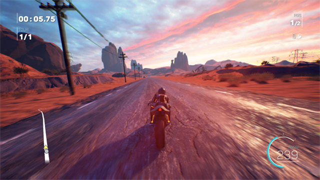 Le jeu commence plutôt bien. Il est intéressant, ça roule vite et on peut faire abstraction du bruit horrible de votre mobylette (la première heure). L’IA pilotant les autres pilotes semble se montrer un peu agressive, ce qui est très intéressant (parce que du coup, vous aussi vous pouvez vous montrer agressif). Le turbo consiste à faire du wheeling. Et il y a plusieurs passages où il y a de la circulation en contre-sens (si vous avez toujours rêvé de prendre une autoroute à contre-sens, c’est le moment rêvé). Mais toutes vos courses vont se ressembler : accélerer, ralentir pour certains virages, faire un peu de wheeling pour mettre le turbo et placer quelques figures pour vous rapporter des points.