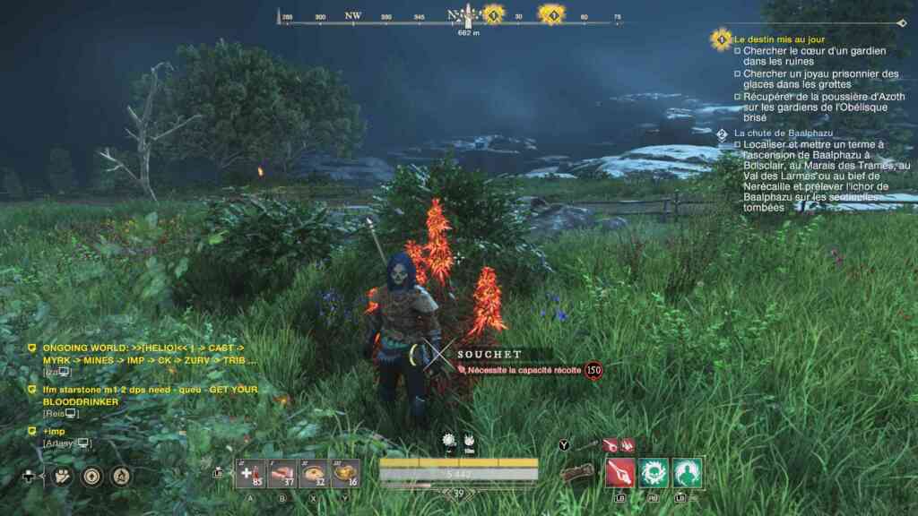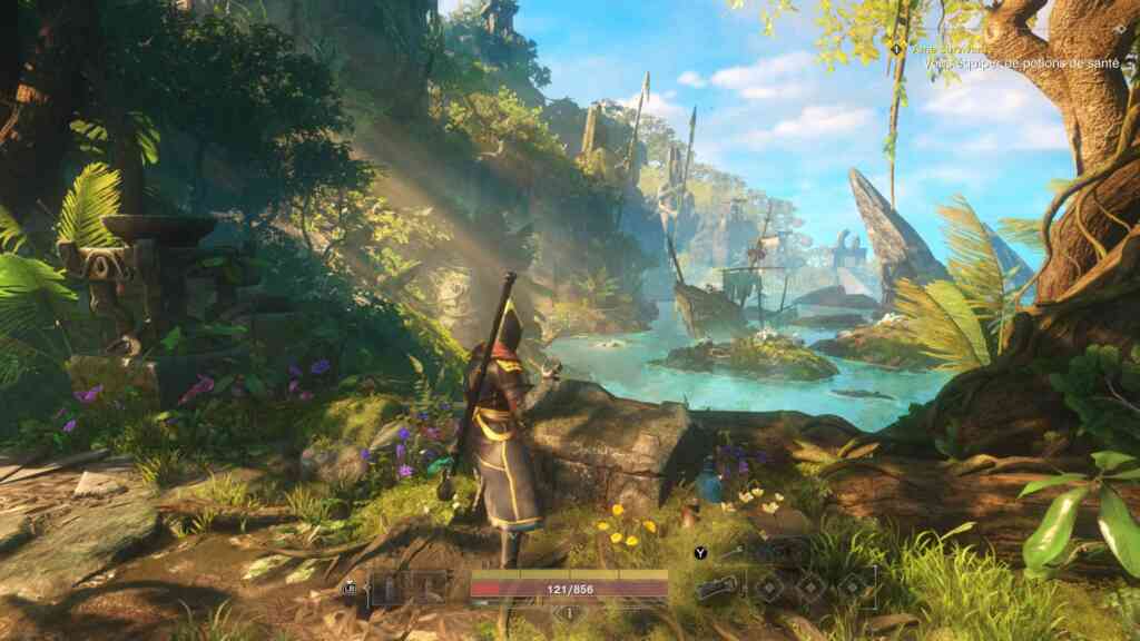 On commence le jeu sur la plage, après que notre bateau se soit échoué (zone Gré-du-vent sur la carte). Cette zone sert de tutorial. J’ai par la suite été conduite par les quêtes dans une autre zone (Haute-chute) et au cours de mes explorations (aka un zoom et un déplacement sur la carte), j’ai découvert qu’il y avait une autre zone où on pouvait commencer (Falaises du roy). Les deux indices qui m’ont conduit à penser ça sont le fait que le niveau recommandé de ces 2 zones sont de 1 à 17 puis le fait que l’histoire comportait les mêmes tutos. Parce que oui, fallait que j’aille voir, même si aucune mission ne m’y a guidée. C’est un peu bizarre d’ailleurs de devoir refaire un tuto alors que j’ai dépassé le niveau 30. Par contre l’histoire de cette zone s’avère plus intéressante que celle sur laquelle j’ai commencé. Mais j’y ai rencontré moins de joueurs alors je ne sais pas. Est-ce qu’il n’y a qu’une seule zone pour débuter ou il y en a bien deux ? Telle est la question (et j’ai accessoirement la flemme d’aller voir sur internet).