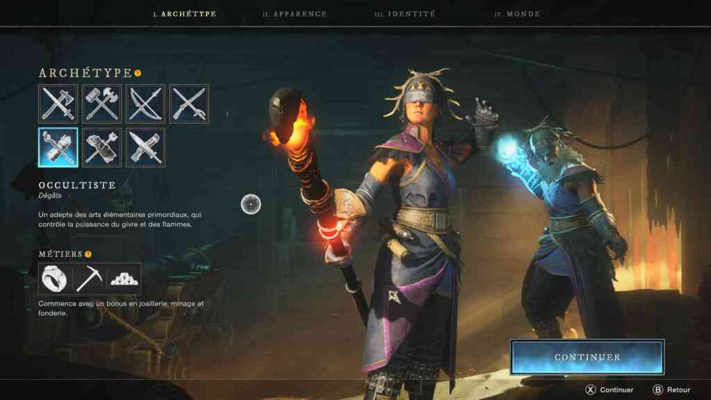Parmi les améliorations, on peut retrouver l’ajout de classes. C’est donc avec plaisir que j’ai choisi la classe des mystiques (l’arme présentée avait l’air très cool, c’est mon unique raison). J’ai passé plusieurs minutes à choisir la coupe et la couleur de cheveux de mon perso pour finir avec une coiffe qui cache tout. Heureusement pour moi, j’ai pu modifier ça par la suite. Avec un chapeau ridicule de lapin rose…