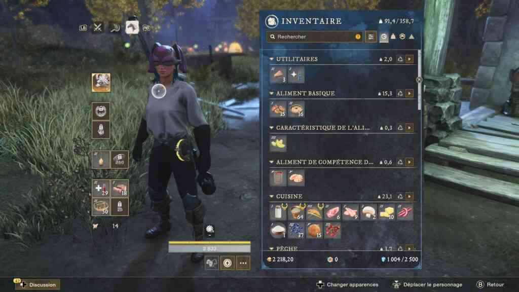 Mais revenons à mon personnage (aux cheveux violets montés sur un cochon géant qui prétend être un ours). On peut faire évoluer son perso sur tout : la capacité de bucheron, minage, cuisinier, musicien… Mais il faut monter un peu en niveau pour que cela soit intéressant. Cela fait beaucoup d’arbres à couper pour atteindre le niveau 50 quand même.