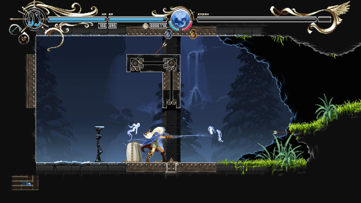 La progression, bien que classique, s’avère agréable et l’on profite aussi de quelques touches de subtilités. Au début, Deedlit se bat avec une épée à une main puis à force de vaincre des adversaires, la haute-elfe obtient de nouveaux armements, à l’instar d’une hache lourde, lente mais puissante, et même des lances mais aussi des « arcs » de plusieurs types. En complément, ces armes à distance permettent de ricocher sur certaines parois de murs. L’intérêt ? Quelques énigmes dédiées spécialement à ces arcs et facultés de la haute-elfe.