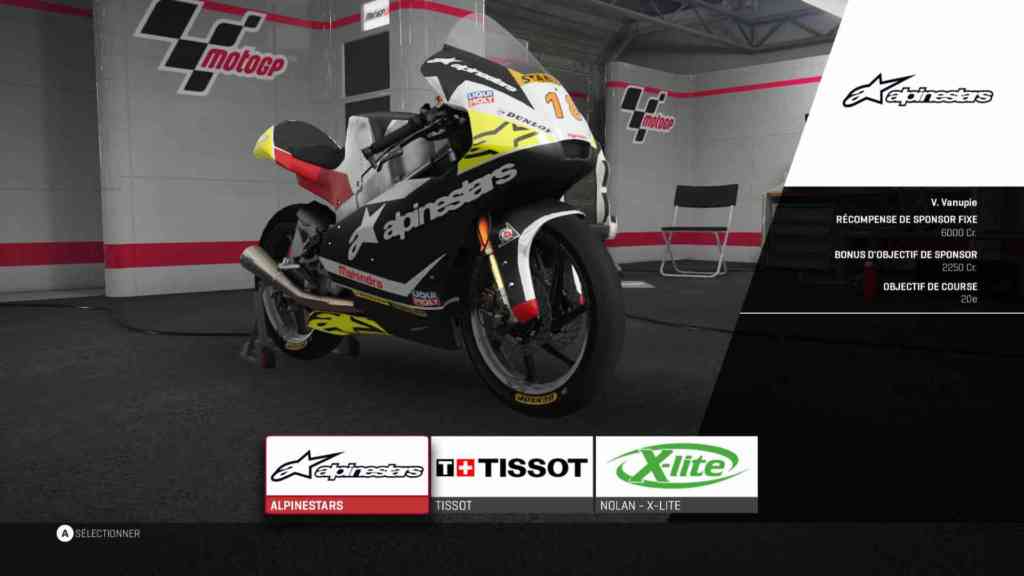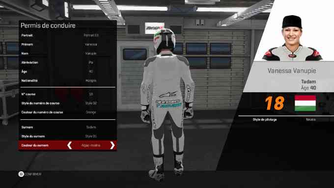 J’ai aussi pris beaucoup de plaisir à customiser ma moto et mon pilote. Il n’y avait que l’embarras du choix et il y a des marques que je ne pourrai pas me payer dans la vie réelle. Alors j’avoue que j’ai pris tout mon temps…