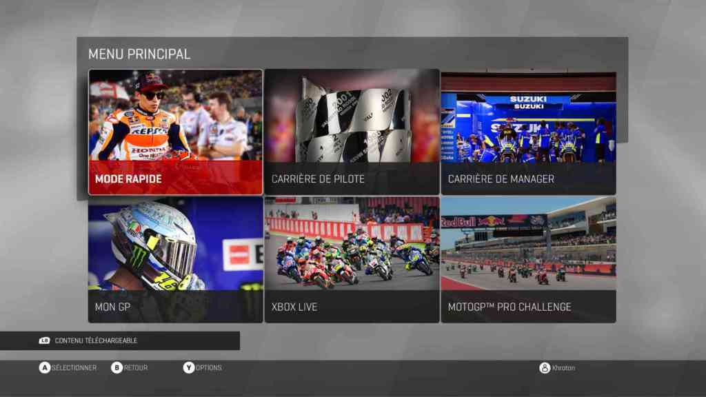 Qu’est-ce qui caractérise Moto GP 17 par rapport au précédent ? Plus ! Plus de tout ! Plus de contenu (motos, pilotes et équipements), plus de modes (bon en fait, un seul mode en plus), plus beau, le son est meilleur aussi puisque chaque moto a un son caractéristique. Le début du jeu a suffi pour me bluffer. Puis j’ai commencé à tripper quand j’ai choisi ma moto et enfin j’ai découvert de bonnes sensations quand j’ai commencé à parcourir les pistes (les fesses de mon pilotes ont testé la « souplesse » du goudron).