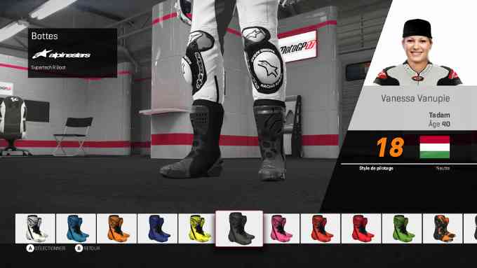 J’ai aussi pris beaucoup de plaisir à customiser ma moto et mon pilote. Il n’y avait que l’embarras du choix et il y a des marques que je ne pourrai pas me payer dans la vie réelle. Alors j’avoue que j’ai pris tout mon temps…