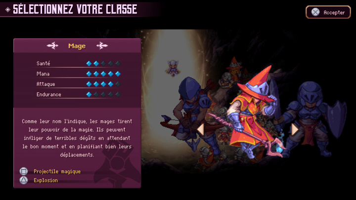 Avant de découvrir cet univers à la plastique pixel art aguicheuse, féérique et très dangereuse qu’est Terragaya, il faut passer par un choix de difficulté et celui de la classe du protagoniste. En ce qui concerne le premier nommé, allant de « promenade » à « guerrier » quel que soit le choix effectué, vous ressentirez des sueurs froides face à des passages délicats ou via l’exigence des combats à l’essence Souls-like.