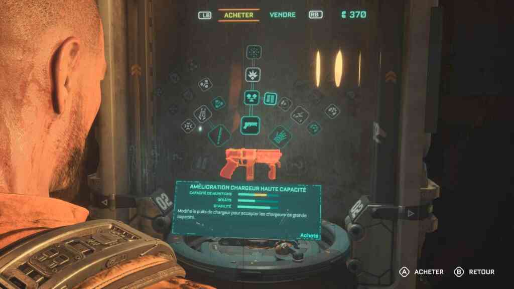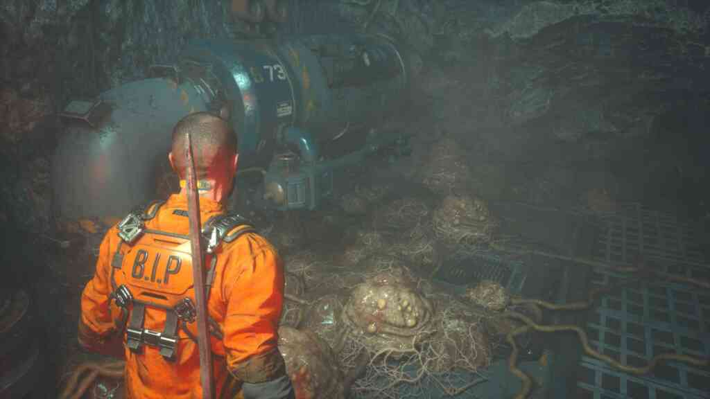 Les combats sont bien pensés aussi. J’aime beaucoup le système d’esquive qui ne requiert pas d’appuyer sur un bouton mais d’indiquer la direction avec le joystick. C’est beaucoup plus intuitif. Après, vous avez à disposition le baton électrifiant, le GRP qui vous permet de projeter n’importe quoi (ou n’importe qui) et quelques armes dont vous trouverez les plans si vous prenez la peine de chercher autour de vous. Le bâton est un indispensable qu’il est nécessaire de maîtriser parce qu’il est facile de se retrouver à court de munitions ou de batteries. Parce que le GRP fonctionne avec des batteries, ce serait trop facile sinon. C’est une arme particulièrement utile et c’est devenu un réflexe pour moi de l’activer quand il y a un jumpscare. Ce qui fait que je suis souvent à court de batteries… Sans compter qu’à certains endroits, le décor vous pousse à l’utiliser pour projeter des monstres sur des pics ou sur des hélices en mouvement. Pour les armes à feu, je n’utilise que les trois premières : le Riot Gun, le Skunk Gun et le premier pistolet que vous trouverez (dont j’ai zappé le nom). J’ai les plans pour les autres, mais je ne vais pas les développer je pense. D’autant plus que je viens d’équiper mon pistolet d’explosifs et que c’est très utile, même si ça vide mes munitions à une vitesse folle. Parce que bien sûr, vous pouvez upgrader vos armes. Et pour finir, vous avez aussi l’attaque furtive où vous vous approchez par derrière pour poignarder le monstre. Très très utile à partir du chapitre 4…