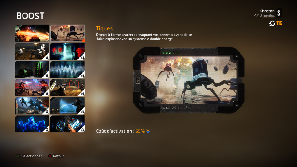 Au fur et à mesure de votre progression, vous pourrez débloquer de nouvelles armes, de nouvelles capacités ou encore des skins. Et si vous n’êtes pas patient, vous pouvez toujours les acheter avec les crédits gagnés pendant le jeu. Mais moi je suis radine, je vais attendre de progresser tranquillement…