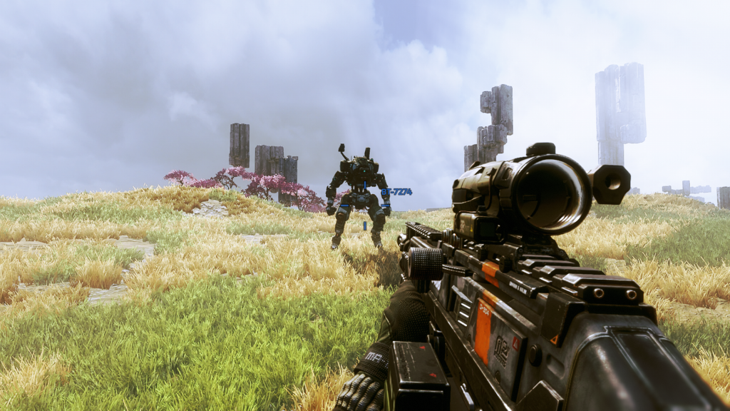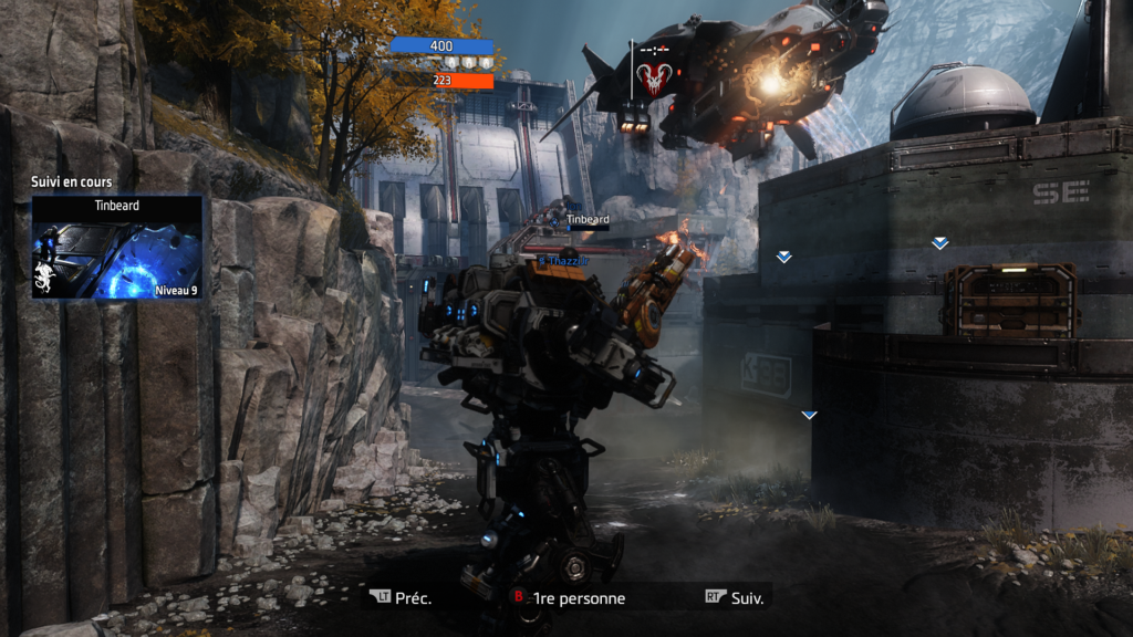Le multi est dynamique et tout se joue très rapidement. Trop rapidement peut-être. Il n’est pas possible de se planquer, et marcher est une mauvaise option. Courir n’est pas suffisant, il faut tout le temps sauter, courir sur les murs et glisser si vous ne voulez pas mourir immédiatement. Il n’y a pas de stratégie. On a bien essayé avec mon co-équipier de jeu, le Lutin, mais si l’un de nous se fait tuer, il n’a pas le temps de prévenir l’autre qu’il est déjà mort… C’est du bourrinage pur et dur. Pas mon type de jeu d’habitude et pourtant, cette fois-là, j’adore. Pas seulement parce qu’il est beau mais il est prenant. Le pilote est très réactif et le Titan est un plaisir de démolition. Ce jeu a même réussi à rendre le Lutin silencieux plusieurs fois… J’adore le fait de pouvoir monter sur un titan ami et l’assister de là-haut, tout comme sauter sur un titan ennemi et le désactiver. Et une fois que vous avez appelé votre titan, vous n’êtes pas obligé de monter dedans. Vous pouvez le mettre en mode suivi (comme un petit toutou) ou en mode automatique.