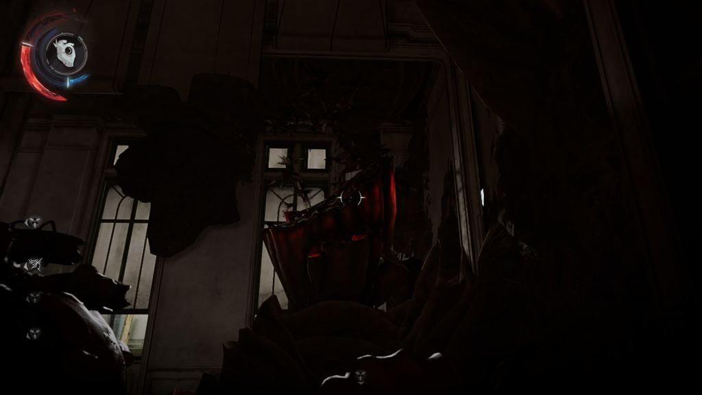 Le début est un peu longuet. Enfin… Peut-être pas en fait, le début ne se joue pas, il se regarde et ça le rend un peu long (je ne suis pas réputée pour ma patience). Mais l’apparition de la « méchante » Delilah vaut le détour. Et là vous commencez vraiment le jeu en choisissant d’incarner Corvo ou Emily. J’ai commencé avec Corvo et puis par curiosité, le soir suivant j’ai recommencé pour avoir Emily. Et je suis restée avec elle au final. Et je ne regrette pas. J’adore ses pouvoirs… Mais j’ai hâte de finir le jeu pour recommencer avec Corvo. Ils ont des pouvoirs complètements différents, notamment pour se déplacer. Corvo a son Clignement qui lui permet de se téléporter et Emily a Longue portée qui est difficile à expliquer. Disons qu’elle vise un point et elle se déplace automatiquement sur ce point. Ce n’est pas de la téléportation, c’est plutôt comme un point d’encrage qui l’attire une fois qu’elle l’a posé.