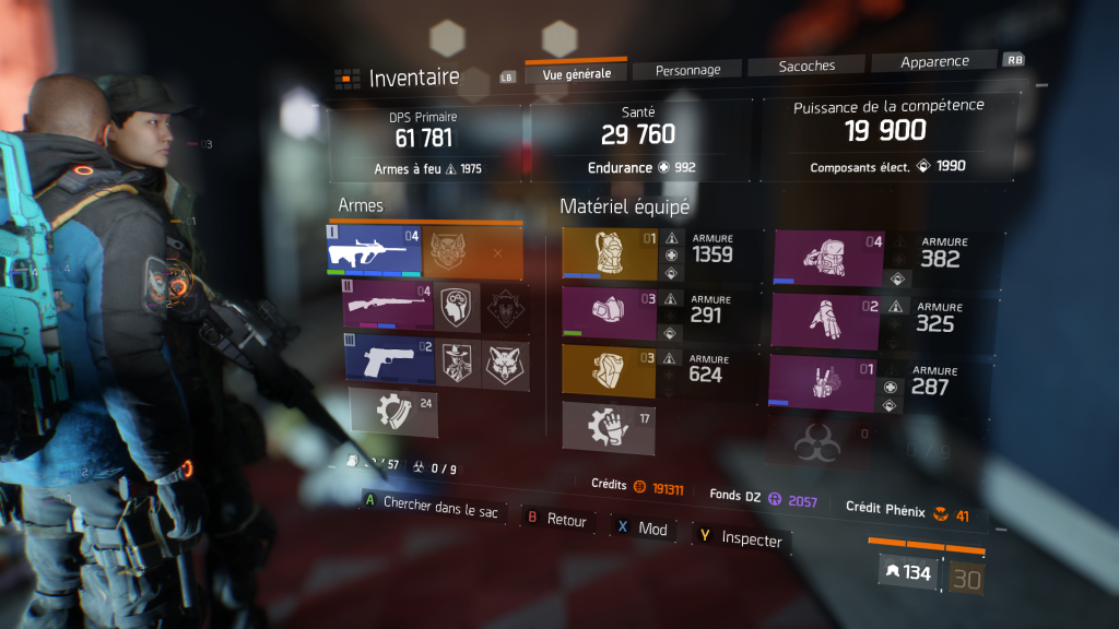 Les autres joueurs et méchants de la Dark Zone ne sont pas la seule difficulté. L’intérêt de la Dark Zone (en dehors de tuer tout ce qui bouge) est ce que vous pouvez récupérer. L’argent, déjà, n’est pas le même que celui de la zone de dehors. Donc certaines armes ne peuvent s’acheter qu’avec l’argent de la DZ. Et tout ce que vous récupérez dans la DZ devra être extrait et décontaminé pour pouvoir l’utiliser en dehors de la DZ. Il vous faut donc trouver une zone d’extraction, appeler un hélicoptère, attendre qu’il arrive, charger le paquet, attendre qu’il parte, et si vous avez survécu à ça, vous récupèrerez votre matériel dans n’importe quelle réserve de n’importe quelle planque. Si vous n’avez pas survécu à ça, vous avez lâché votre butin et il ne vous reste plus qu’à vous précipiter au même endroit en espérant que personne ne vous le prenne. Parce qu’une fois lâché, il est disponible pour n’importe quel autre joueur… Et la petite difficulté, c’est que quand vous appelez un hélicoptère, tous les joueurs des environs reçoivent l’information. Ils peuvent donc tous venir profiter de l’extraction ou vous tuer pour récupérer votre équipement si durement gagné…