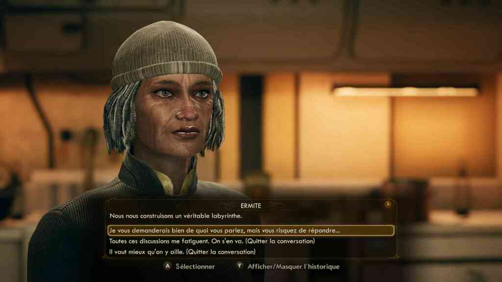 Les conversations sont vraiment top : on peut être agréable, cinglant, cynique, inintéressé ou méprisant. L’humour est très présent, rien qu’au début quand on parle avec le scientifique qui nous a réveillé de notre sommeil cryo. Il ne sait jamais si la vidéo fonctionne ou pas. Ou quand on atterrit sur notre contact (qu’on tue, forcément). Ou L’IA de notre vaisseau… C’est un jeu dans lequel les interactions avec les PNJ ne sont jamais ennuyeuses.