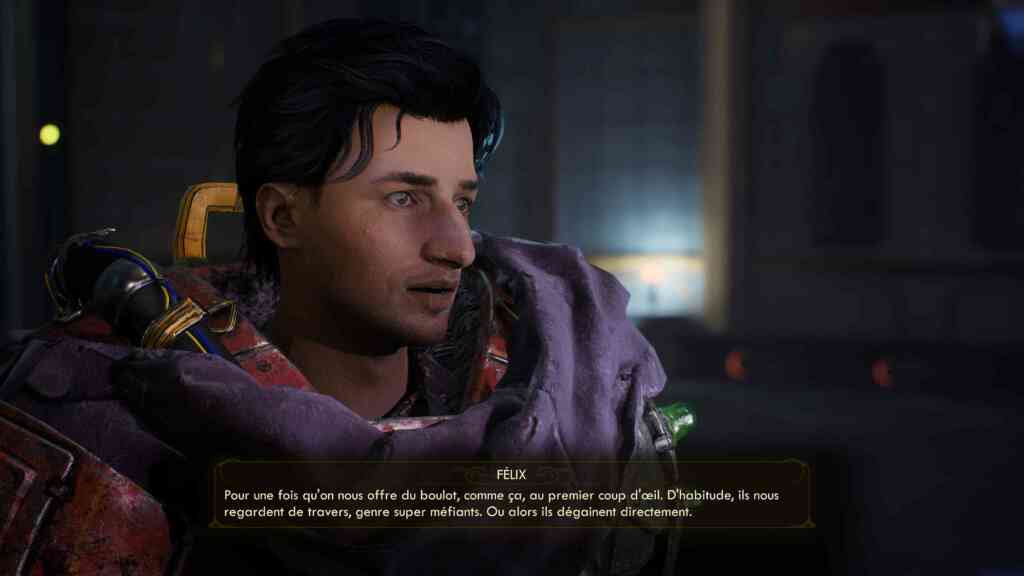 J’ai joué au jeu il y a longtemps et j’avoue que j’ai oublié la majeur partie de l’histoire. Je ne me souvenais que du pitch grosso modo. Il y a quelques passages du jeu qui me sont revenus en mémoire, mais vu que je n’en ai pas beaucoup (de mémoire), ça m’a aidé à rejouer. Le jeu de base était déjà très bon comme vous pouvez le lire dans ce test de Tof de The Outer Worlds sorti en 2019. La version remasterisée a amélioré certains graphismes, mais pas tous. Les animations sont parfaites, les déplacements aussi sont excellents, mais les gros plans sur les visages montrent des différences nettes entre certains personnages. Certains sont très bien faits, d’autres sont grossiers et figés (je ne parle pas des drogués à la sangsue qui ont une très bonne raison d’être figés). Je n’irai certainement pas vous faire un comparatif des améliorations graphiques avant / après parce qu’il aurait fallu que je réinstalle l’ancienne version du jeu et j’ai la flemme. Je fais donc confiance au pitch des développeurs : meilleur éclairage, meilleure qualité graphique, météo dynamique… Notez que cette nouvelle version est fournie d’office avec les DLCs (que j’ai découvert avec cette version remasterisée). Les heureux propriétaires de l’ancienne version devront débourser 10€ pour la version next-gen.