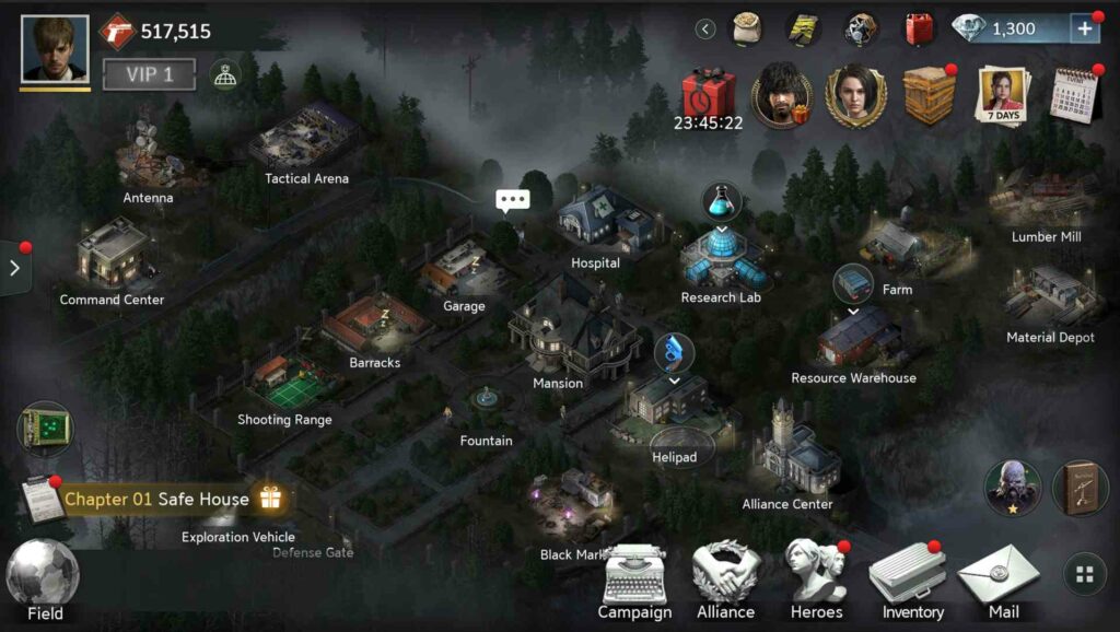 Votre quartier général prendra forme autour d’un manoir abandonné. En restaurant ses installations une à une, vous poserez les fondations de votre survie. Gestion des ressources, amélioration des défenses et recherche technologique seront au cœur de votre progression pour transformer ce lieu en véritable forteresse.