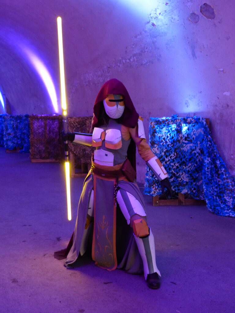 Quoiqu’il en soit, les cosplayeurs étaient au rendez-vous et ça, c’était génial. On pouvait assister à différentes démonstrations de combats de sabres laser. On pouvait même s’y initier. Mais les places étaient chères et j’ai préféré m’initier au lancé de couteaux qui n’avait pas encore de file d’attente. Et spoiler alert, je ne suis pas très bonne au lancé de couteau. Pourtant l’instructeur y a mis tout son coeur !