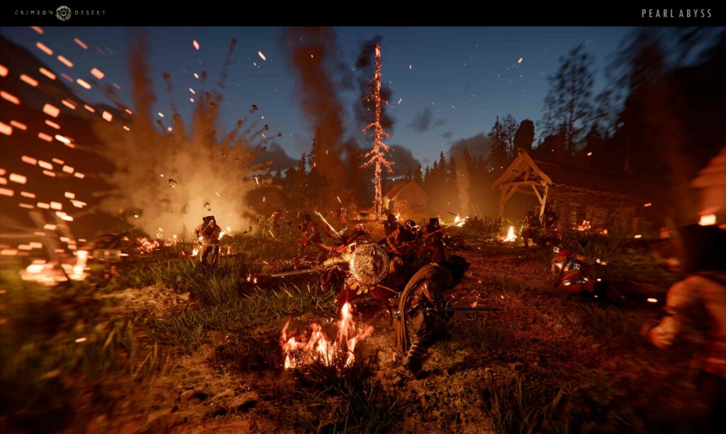 S’il y a bien un aspect qui impressionne immédiatement dans Crimson Desert, ce sont les combats. Pearl Abyss mise sur l’action brute avec des affrontements dynamiques qui rappellent parfois les meilleurs action-RPG. Chaque coup porté a du poids, chaque esquive est une question de survie, et le tout est sublimé par une mise en scène spectaculaire.