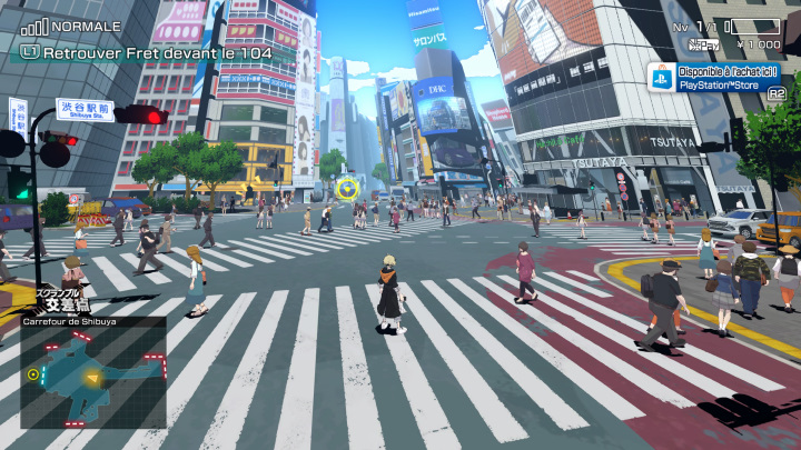 Bien évidemment nous n’avons pas accès à la semaine complète dans cette démo mais aux deux premiers jours, l’équivalent d’une heure de jeu. Pendant ce laps de temps, nous devons réaliser les objectifs demandés en vagabondant dans un univers 3D. Il s’agit là de l’un des changements majeurs de cet opus, cette transition de la 2D à la 3D est plutôt bien réalisée et c’est avec joie que l’on retraverse quelques quartiers déjà visités sur le plan 2D du premier volet The World Ends With You.