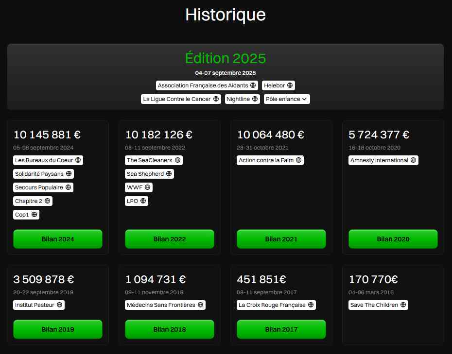 Historique des totaux de dons des différentes éditions