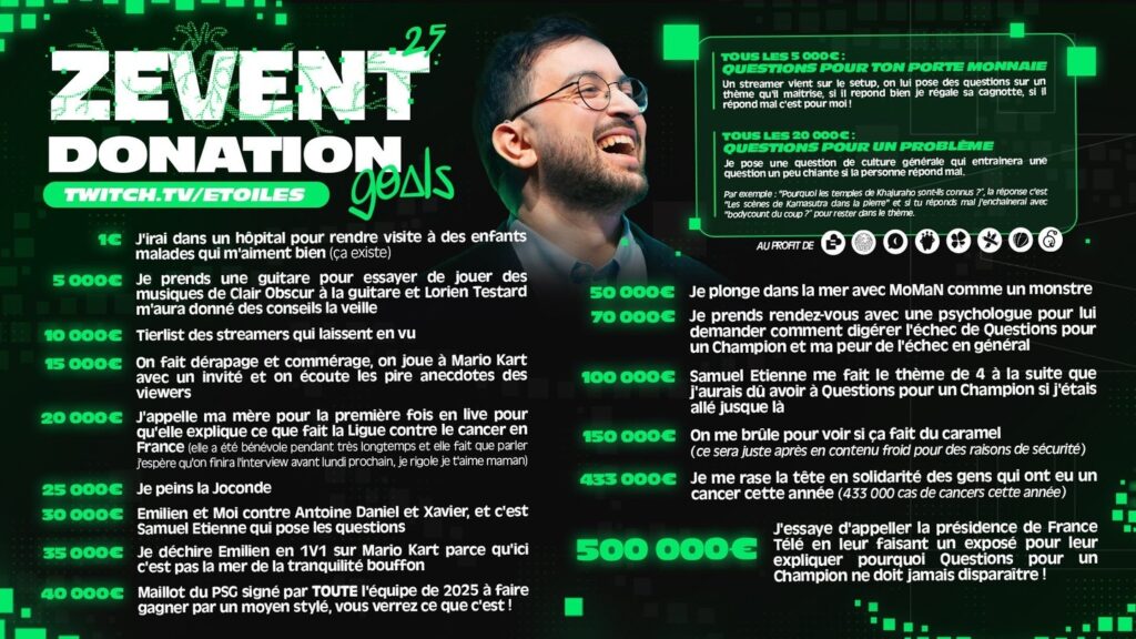 ZEVENT, est un projet caritatif destiné à récolter des fonds par le biais du streaming pendant 3 jours.