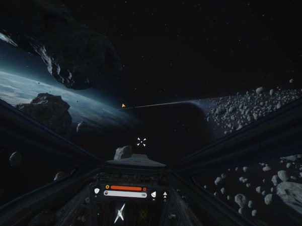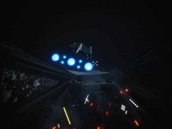 Premier contact et là vous reprenez vos yeux d’enfant. Se voir dans ce cockpit très fidèlement reproduit, c’est tout simplement un bonheur fou. La mission vous propose de naviguer au sein de l’armada rebelle, avant de passer en hyper espace. A destination, il va falloir naviguer au sein d’un champs d’astéroïdes et puis affronter … un destroyer interstellaire. Là EA finit d’enfoncer le clou. Les sensations sont fabuleuses. Survoler ainsi ce vaisseau gigantesque est juste un rêve de gosse !