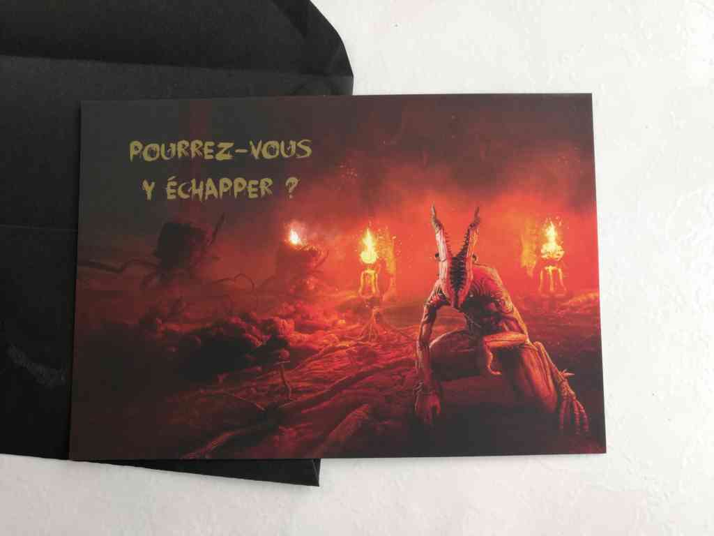 Et après avoir ouvert cette enveloppe, je m’attaque à la deuxième qui contient cette fois-ci le jeu, un autre tapis de souris Ouija, une autre enveloppe de l »envoûtante » Déesse Rouge et le jeu. Ah non, il y un autre cœur avec. Ce n’est jamais bon signe quand on reçoit des cadeaux sanglants…
