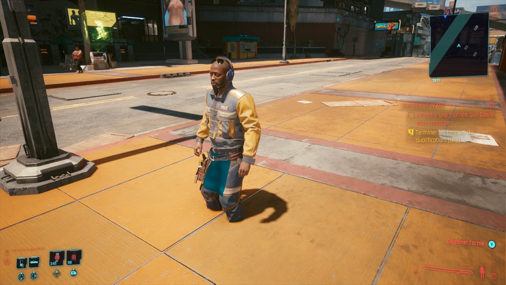 J’ai discuté avec un autre joueur qui a choisi une autre section pour démarrer (enfant des rues alors que moi j’ai nomade) et on a découvert qu’on avait le même partenaire. On n’a pas un partenaire différent pour ces deux sections. J’espère que la section Corpo a un autre partenaire parce que Jackie ne correspond pas trop au style. Mais je l’aime bien quand même, il n’est pas très utile en combat mais il a une bonne personnalité.
