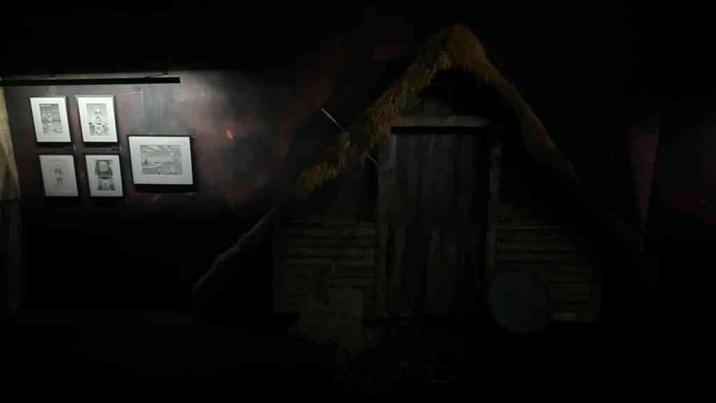 Nous poursuivons notre visite et arrivons près d’un feu où les victuailles sont préparées. Rien de tel qu’un bon gigot pour reprendre des forces avant la bataille ! Au loin, plusieurs maisons se dissimulent dans l’obscurité… Serait-ce l’heure du pillage ?