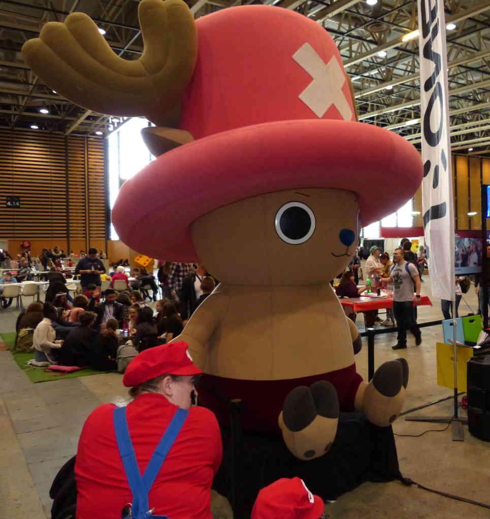 Beaucoup de cosplays étaient très travaillés, même si certains ont privilégié la simplicité comme la petite fille (de dos) en costume en carton. J’ai noté beaucoup moins de personnages de comics mais j’’ai trouvé mon Deadpool (un salon avec des cosplayers sans Deadpool n’est pas un vrai salon avec des cosplayers). J’ai beaucoup aimé Maléfique aussi. Et cette jeune femme bleue dont je ne connais pas le personnage mais qui avait un beau cosplay. Et puis les cosplays steampunk aussi, bien sûr ! Et je n’oublierai pas non plus ces 3 peluches vivantes qui m’ont fait de l’oeil tout au long du salon… J’avais une folle envie d’en plaquer un au sol pour voir s’il était aussi moelleux qu’il en avait l’air… Mais j’ai évité. Je veux pouvoir revenir l’année prochaine… Veuillez noter la retenue dont j’ai fait preuve. Vous pouvez applaudir.