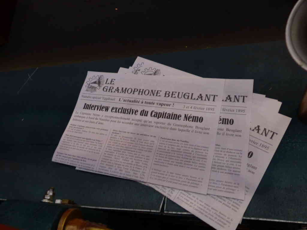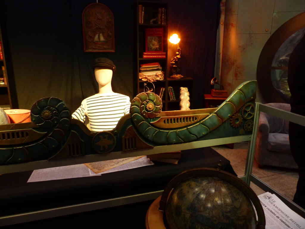 Nous avons parcouru les stands industriels du Nautilus. Les exposants furent incroyables, nous proposant des articles dignes d’être des œuvres d’arts, à base de cuir ou de recyclage de rouages dans des bijoux. Nous avons eu droit à des rencontres inattendues comme Philibert le T-rex qui faisait tout pour nous faire peur ! Nous avons aussi eu l’occasion de parcourir le sous-marin Léviathan et de découvrir son équipage hétéroclite : des cuistots avec des plats suspects, des séniors qui nous dévoilent leur arsenal de guerre ou encore un triton (le masculin de sirène pour ceux qui ne connaissent pas) qui nous a posé des énigmes.