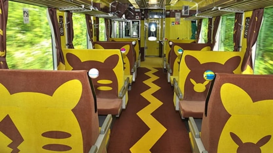 En fait ce train s’appelle Pokémon mais il est en fait entièrement dédié à Pikachu ! Toute la décoration est à l’honneur de Pikachu : les sièges, les rideaux, le sol… Il y a aussi une salle de jeu avec un grand Pikachu allongé au sol.