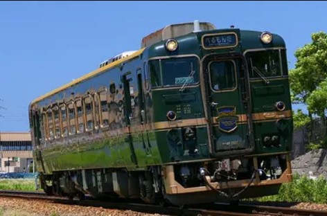 La ligne qui relie la gare de Takaoka à la gare de Himi longe en partie la mer et vous avez non seulement vue sur la mer mais aussi sur les Alpes japonaises. Ils ont même mis en route un train spécial sur cette ligne qui s’appelle « Belles montagnes et mer » avec une superbe locomotive verte.