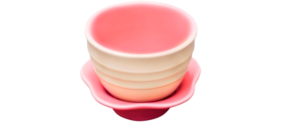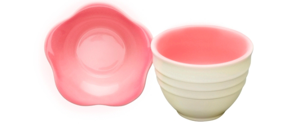 Le Creuset-Japon a sorti sa Flower Collection qui comprend notamment une jolie tasse à thé et sa coupelle :
