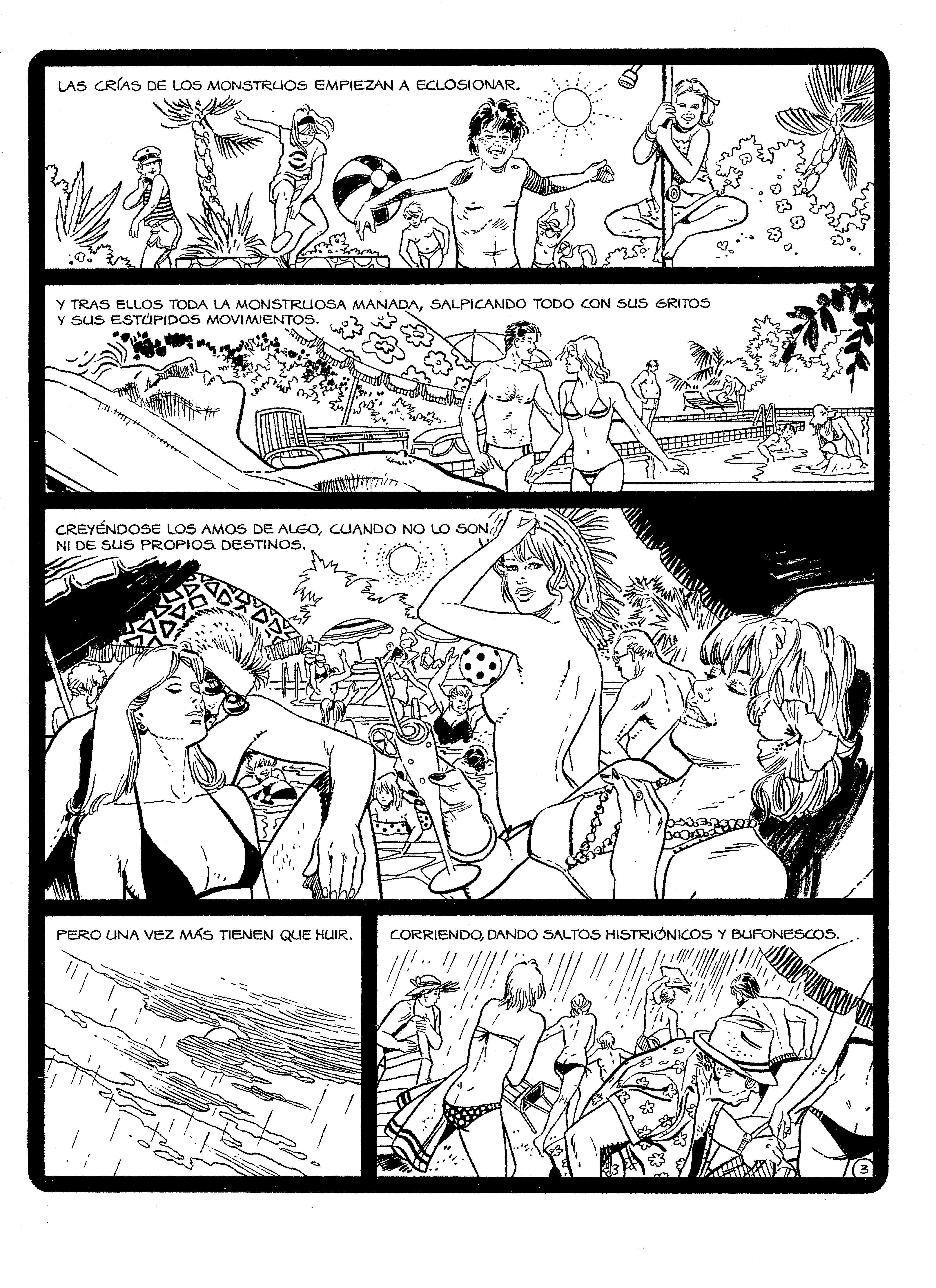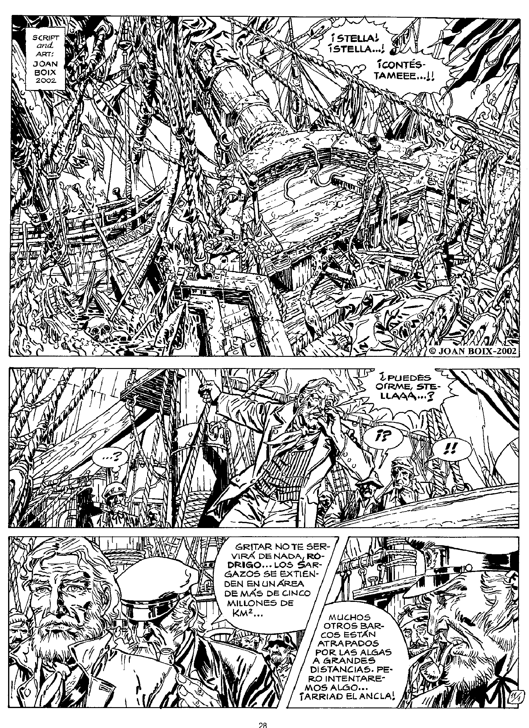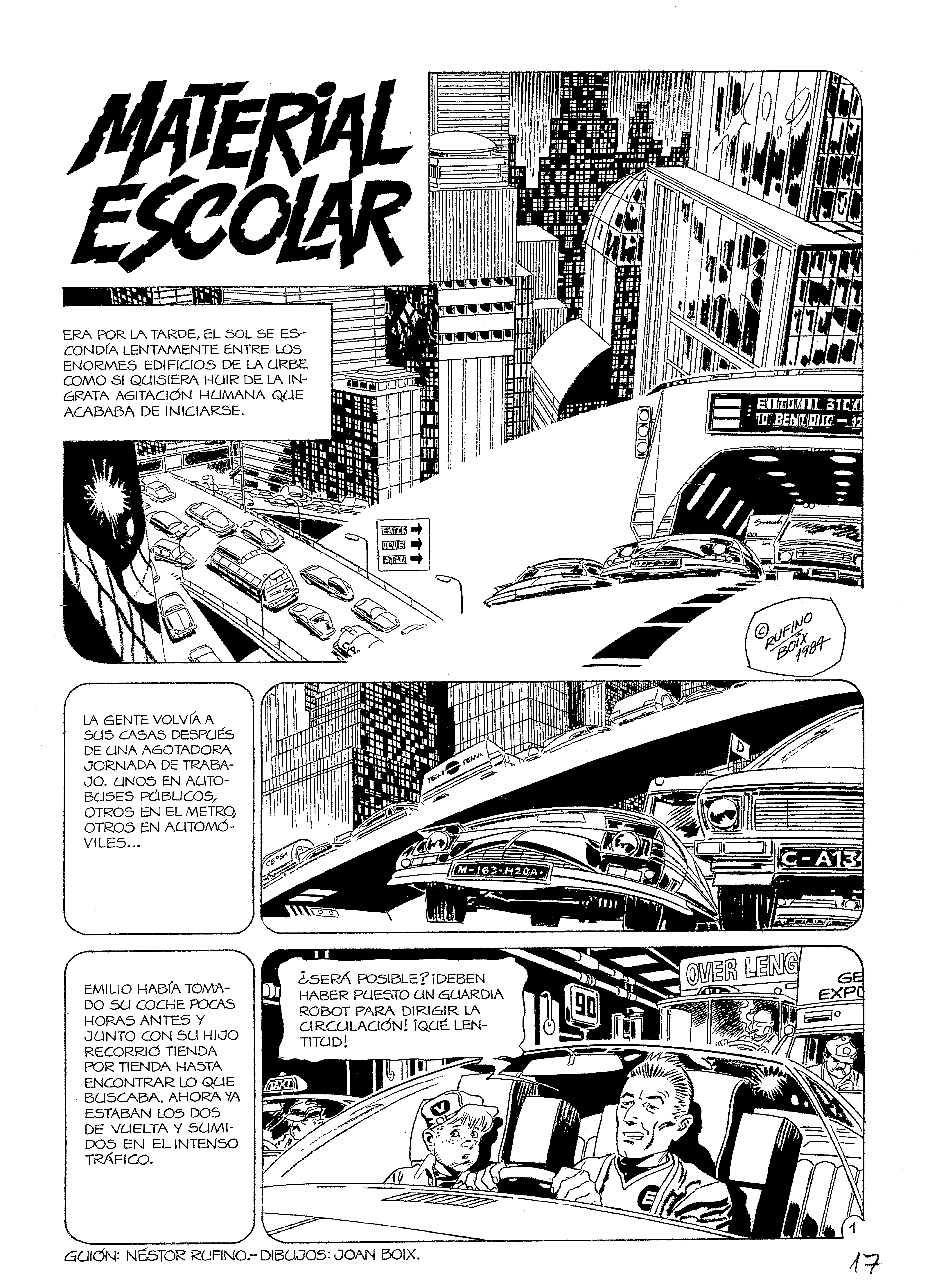 Trois planches tirées de trois univers totalement différents qui démontrent la capacité de renouvellement et d’adaptation de Joan Boix. Dans l’ordre de gauche à droite : Tara y Tobias, une histoire de science-fiction (Material Escolar) et une histoire de terreur à la ligne claire (Socorrista)