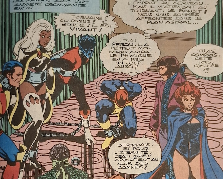 Comme je le disais en introduction, cet opus est mythique. Pourquoi ? Pour ce qu’il nous raconte sur les X-Men. Ils sont prisonniers du club des damnés, dirigé par le célèbre Sebastian Shaw. Il y a aussi le cerveau qui a réussi à abuser Jean Grey. Elle pense vivre dans un monde parallèle, dans un autre temps, en compagnie d’autres personnes. Mais tout ceci n’est qu’illusion. Elle finit par se débarrasser de l’influence du cerveau et les X-Men arrivent à s’enfuir. Mais ce répit n’est que de courte durée car Jean, perturbée par tous ces événements, se transforme, pour la première fois, en Phénix Noir. On la savait investie de la puissance de la force Phénix mais là, elle montre son véritable côté obscur. Et elle a faim ! Ce Spécial Strange a laissé des traces chez tous les amateurs de comics de l’époque. Jean Grey devient une force incontrôlable et elle est du mauvais côté de la barrière. Les auteurs posent des questions de la maîtrise des pouvoirs, du danger de tout cela. Le dessin est parfait en tous points. Un must-have.