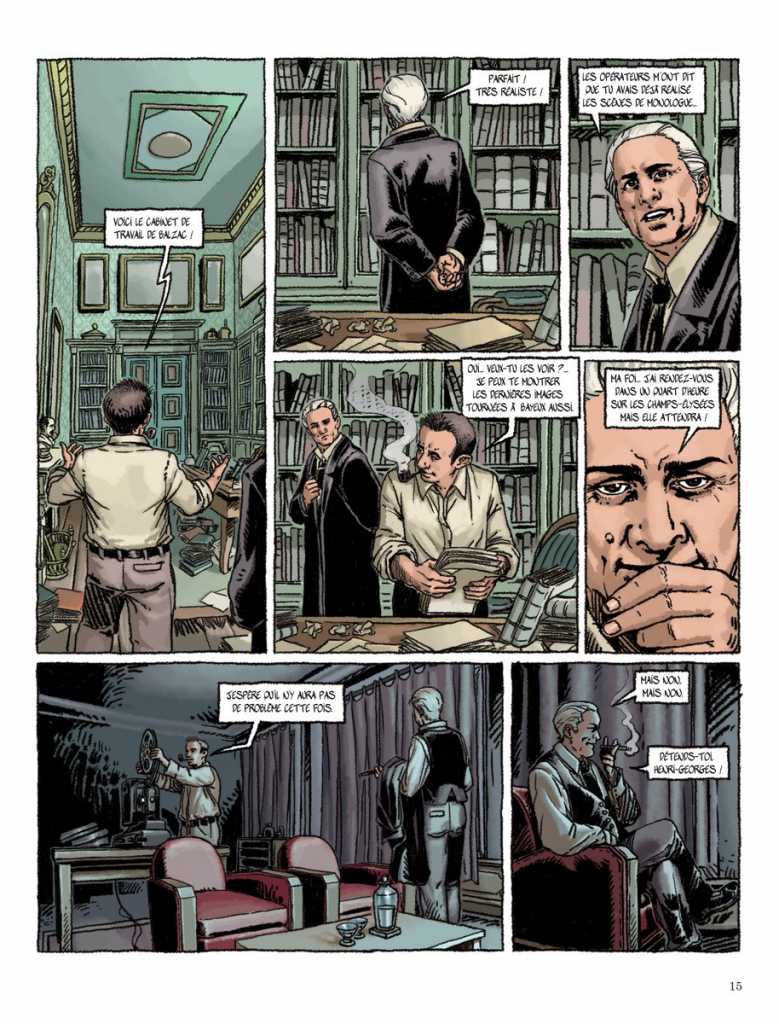abymes2Balzac, abandonné à une douce descente dans les abysses de la folie (voir tome 1 de cette série), est pourtant indirectement au cœur de l’action de la suite de cette série qui prolonge donc son tour de passe-passe pour nous baigner des effluves de l’œuvre de l’auteur de La peau de chagrin et nous permettre de mêler subtilement les époques (XIXème siècle, années d’après-guerre et fin du XXème siècle) et les genres (la littérature, le cinéma, la bande dessinée).