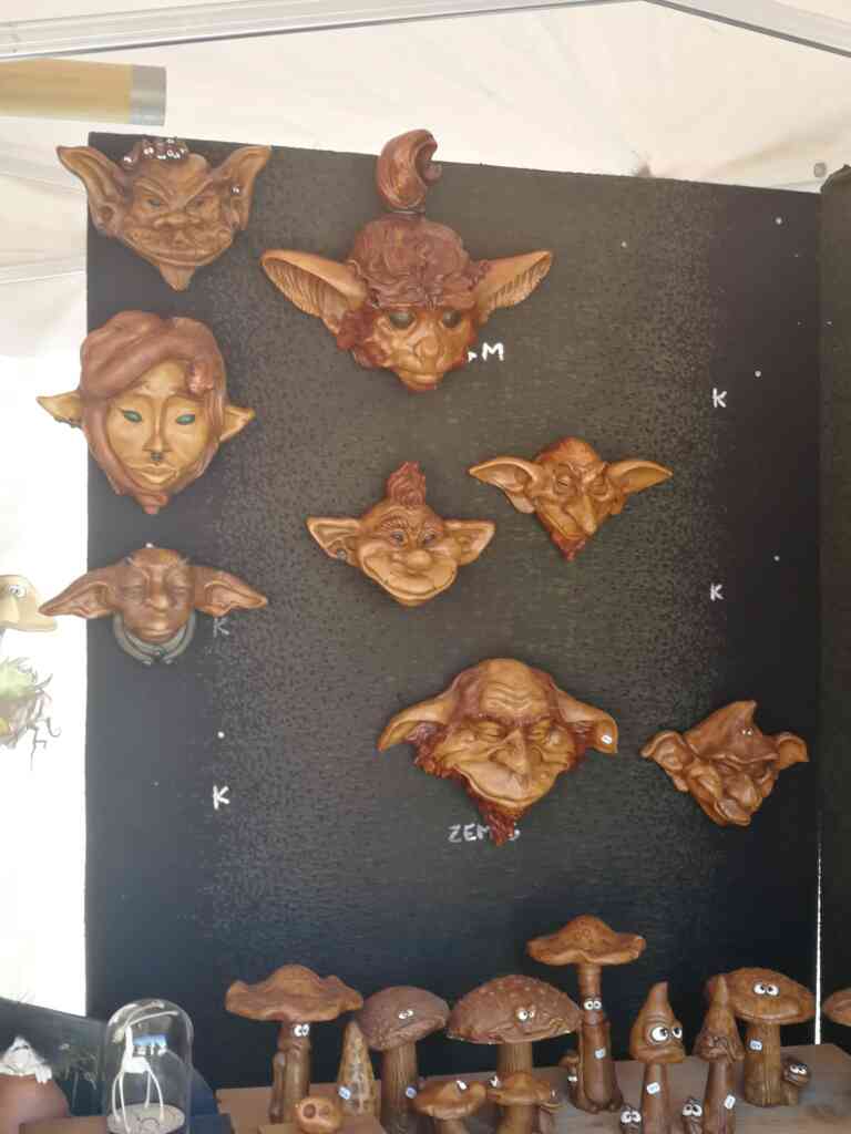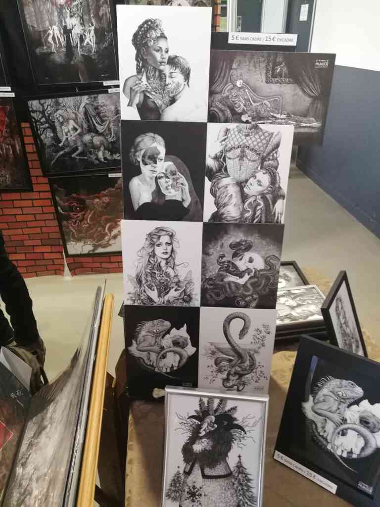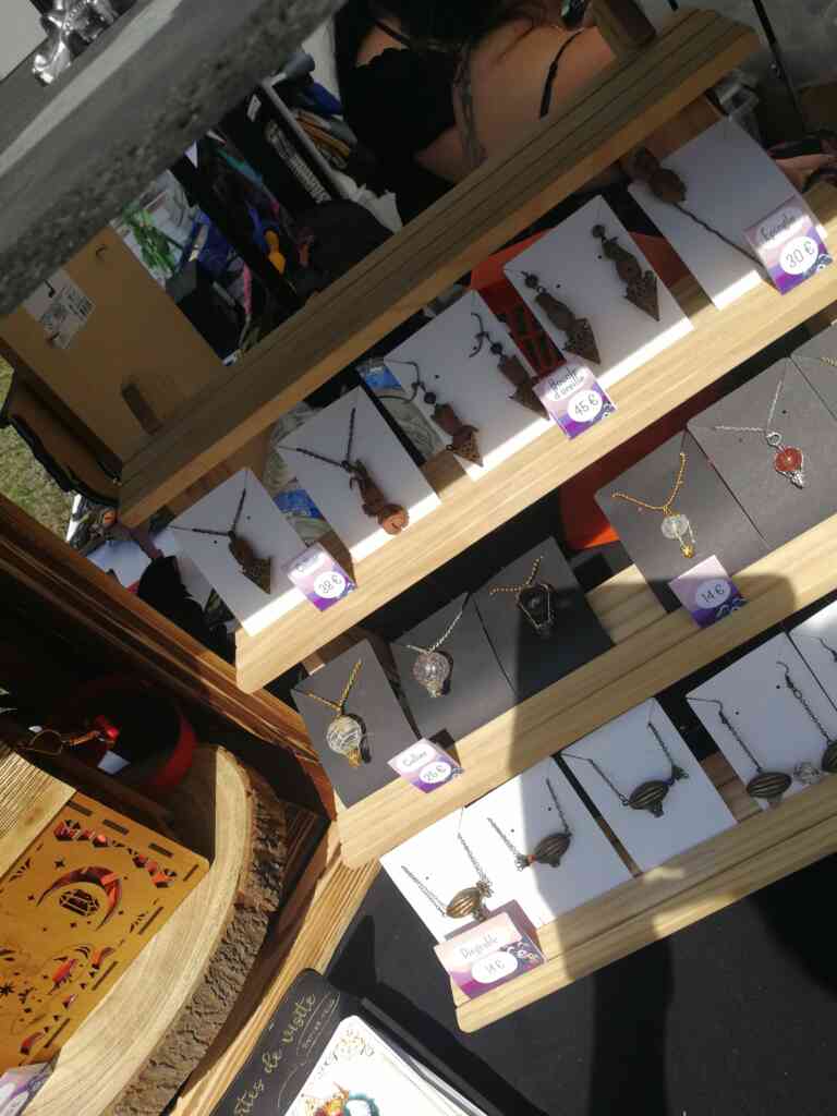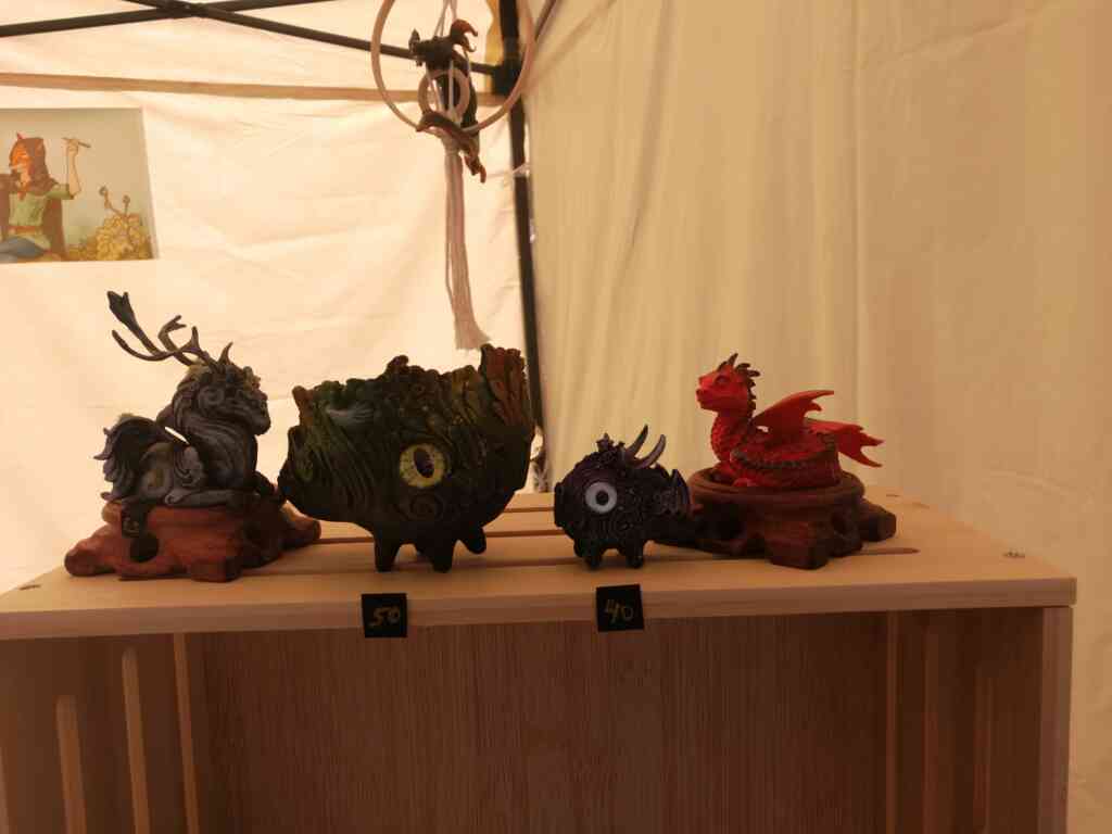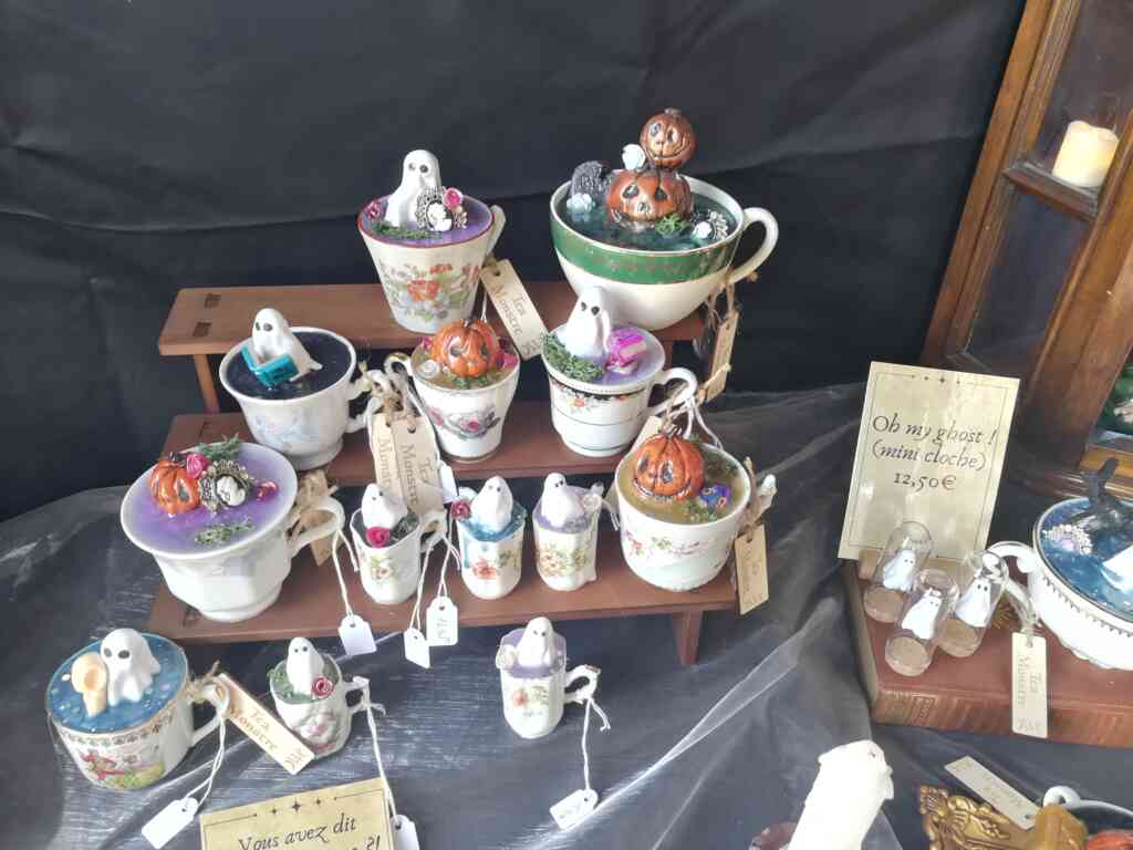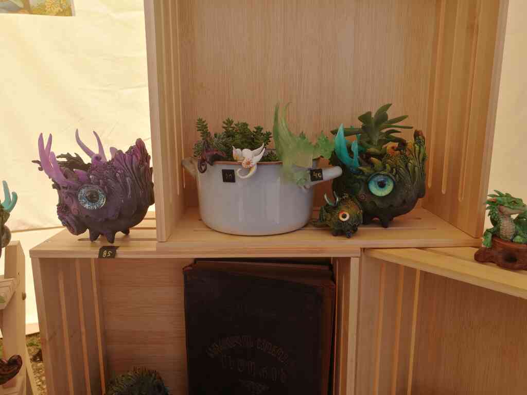 J’ai particulièrement craqué pour le stand « Sanskullartime » qui propose des objets de décoration dans un thème dark, victorien, cabinet de curiosité. Je trouve ses petits et grands tableaux parfaits pour une ambiance maximaliste sombre chez moi ! Mais j’ai aussi trouvé un petit oignon en céramique adorable (de « Antre des Cendres ») qui est devenu mon deuxième compagnon de bureau à coté de ma mandragore (achetée à Yggdrasil aussi). Mais vous pouvez aussi trouver des vendeurs de baguettes (magiques, pas le pain), des tentes remplies de potions scintillantes (Witch’s ashes), et même trouver des bracelets ou dagues créées par un forgeron sous vos yeux ébahis.