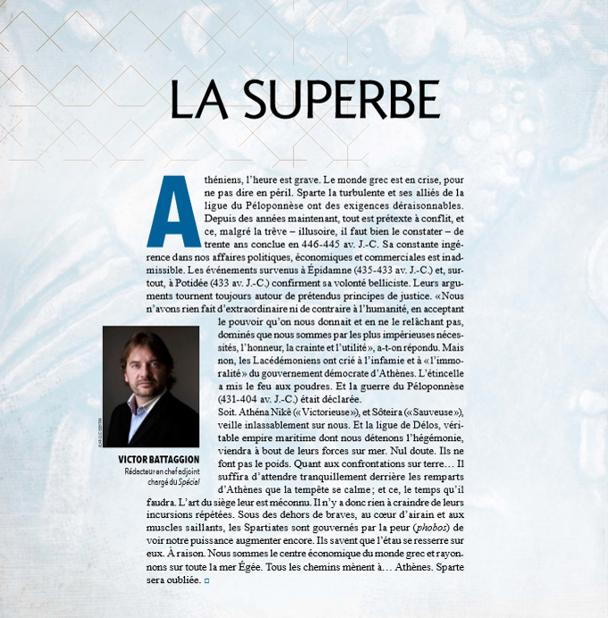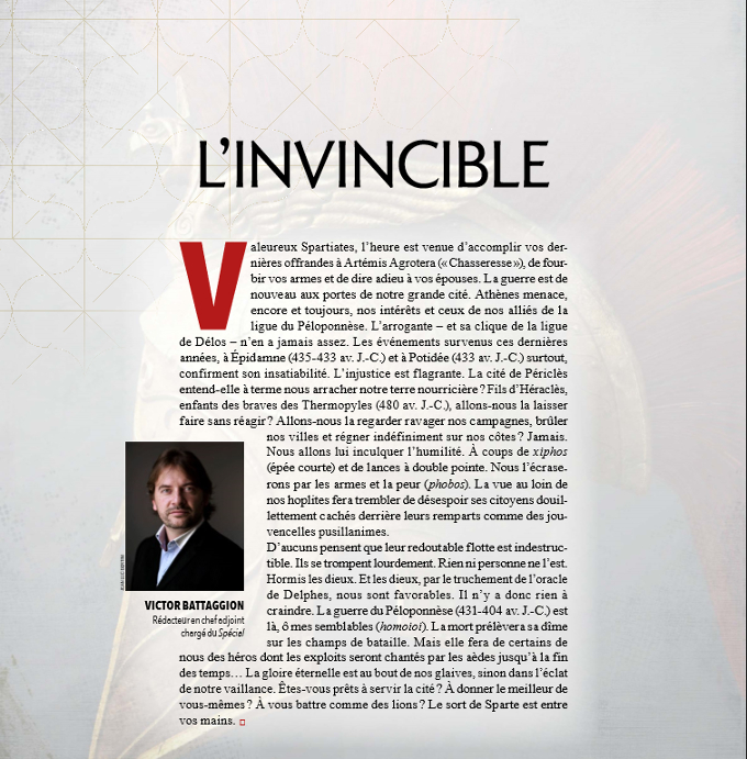 La Grèce Antique. La période est vaste, et c’est un euphémisme. Il fallait donc faire des choix sur les époques et les thématiques à aborder. En cela, les créateurs d’Assassin’s Creed Odyssey ont sans doute inspiré l’angle d’attaque choisi par la revue puisqu’elle se concentre sur la guerre du Péloponnèse, période abordée par le nouveau jeu.