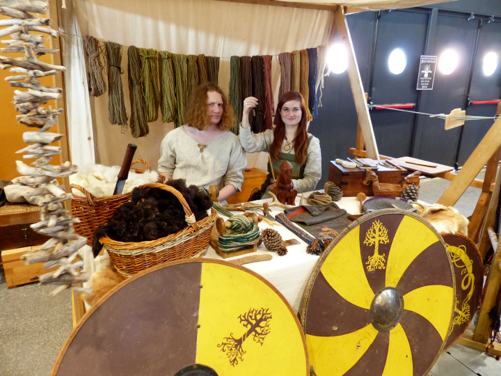 Les stands suivant étaient occupés par L’arbre de vie qui nous faisait découvrir le mode de vie des vikings. Ils avaient moins de place que pour la session d’automne, mais ils ont su optimiser leur espace. J’ai beaucoup apprécié l’atelier de tissage.