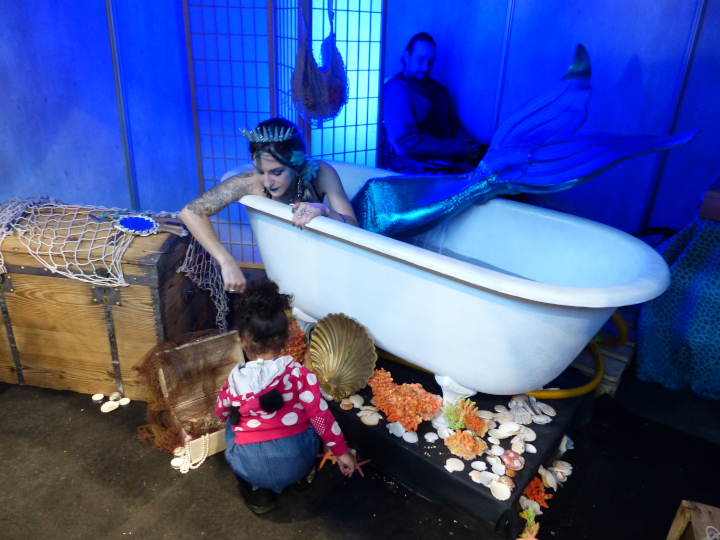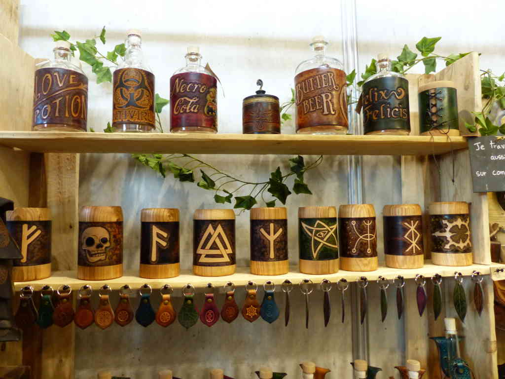Comme toujours, l’univers de Harry Potter avait ses nombreux fans. Et des queues interminables ! Deux magiciens sosies des frères jumeaux Weasley provoquaient un attroupement, mais aussi la boutique officielle de HP avec sa queue interminable. Il y avait aussi un autre stand avec une longue file d’attente mais je ne me suis pas approchée pour voir ce qu’il y avait dedans. Vous pouviez trouver plein d’autres choses dans cet espace : des grimoires, des potions, de bonbons (c’est pas donné, une chocogrenouille quand même pour ce que c’est).