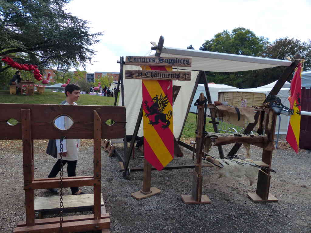 Toujours présents, les Bâtards d’Occitanie, l’Académie de sabre laser et le Haidong Gumdo. Les premiers avaient organisés un petit parcours du combattant bien sympathique pour petits et grands avec esquive de sacs en mouvement, ramper sous (ou sur, suivant la tenue) des fils et frappe sur un pauvre mannequin et son bouclier, le tout avec une tenue matelassée et un casque.
