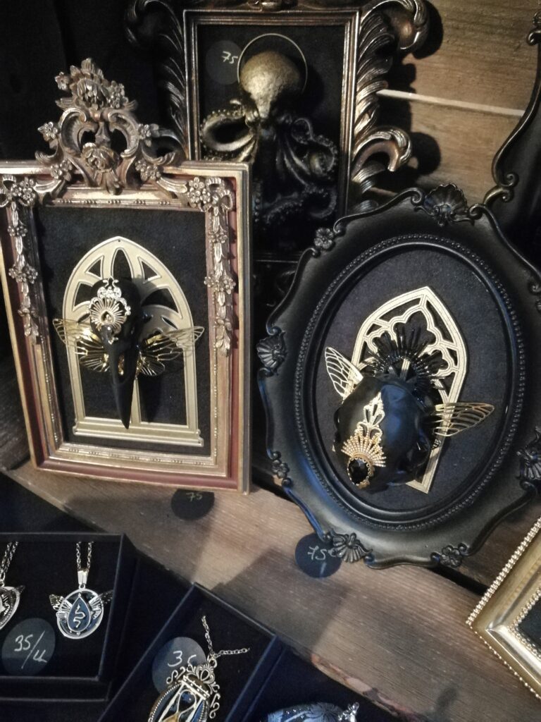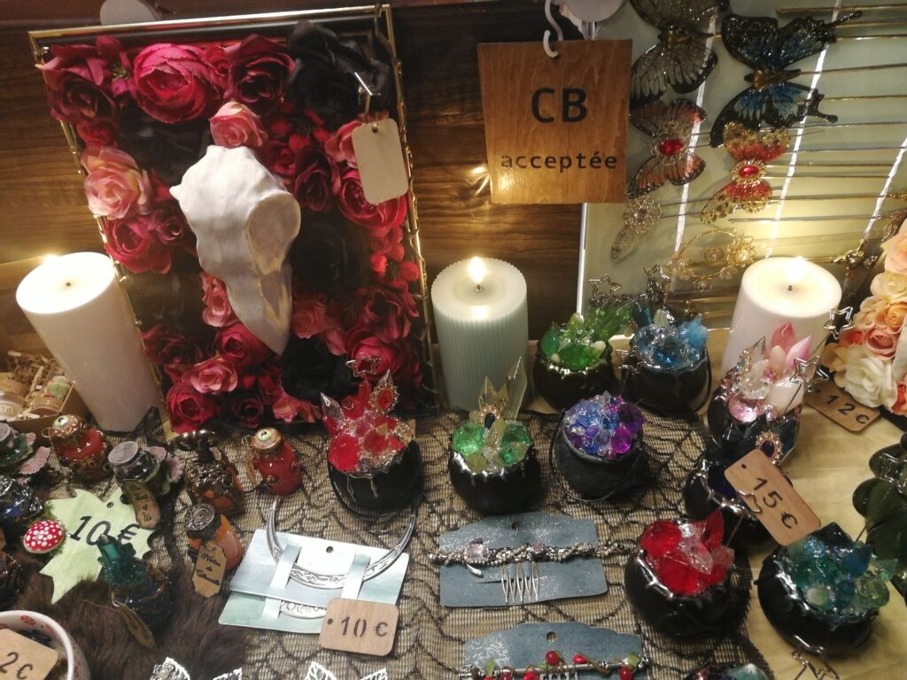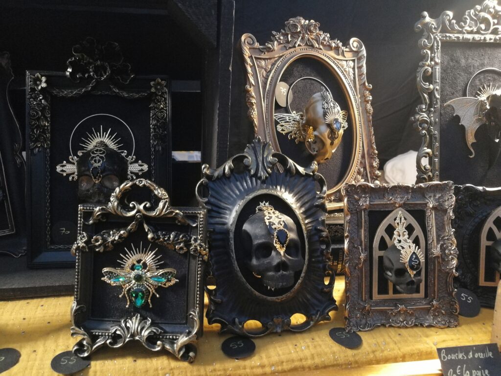 Au niveau des stands, on retrouvait des habitués comme les mandragores de Mandy’s ou Sanskullartime avec ses cadres gothiques que j’aime particulièrement. Mais on pouvait aussi trouver des nouveautés comme le stand des Apprentis sorcières que j’ai beaucoup aimé. Ils ont réussi à donner une petite ambiance très sympathique à leur stand. Voici un de mes préférés.